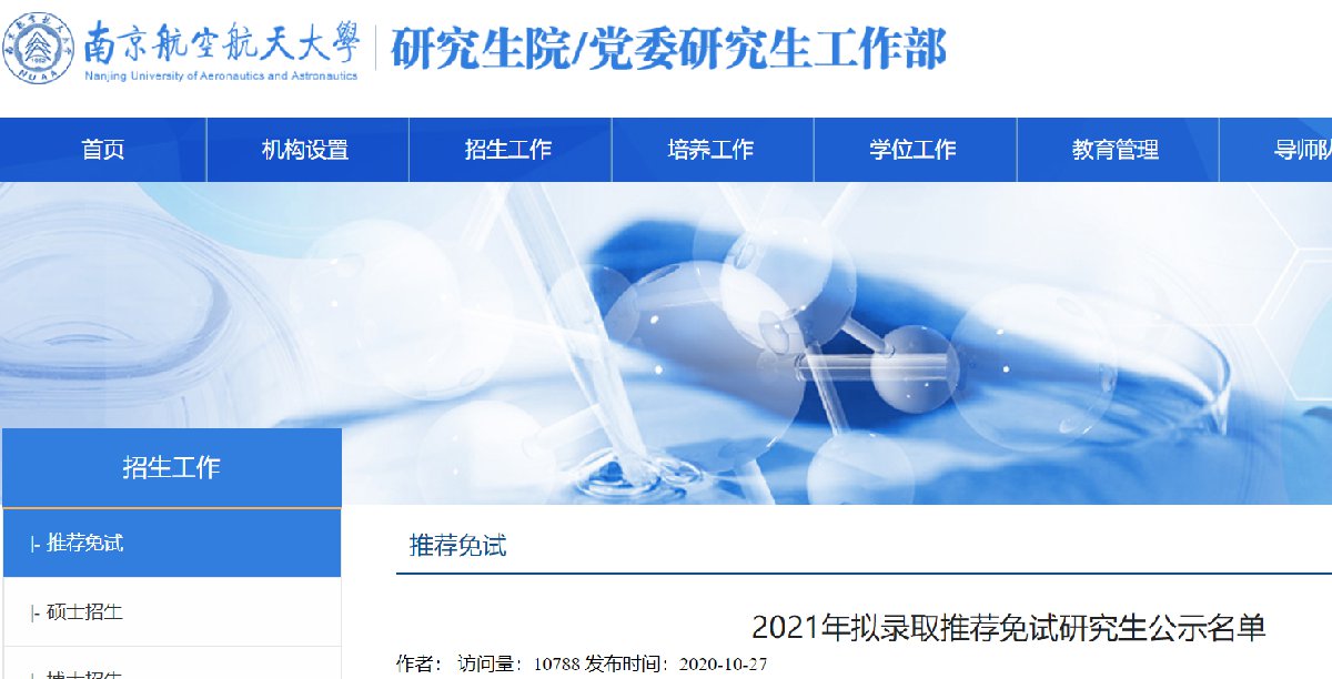 2021年南京航空航天大学拟录取推荐免试研究生公示名单