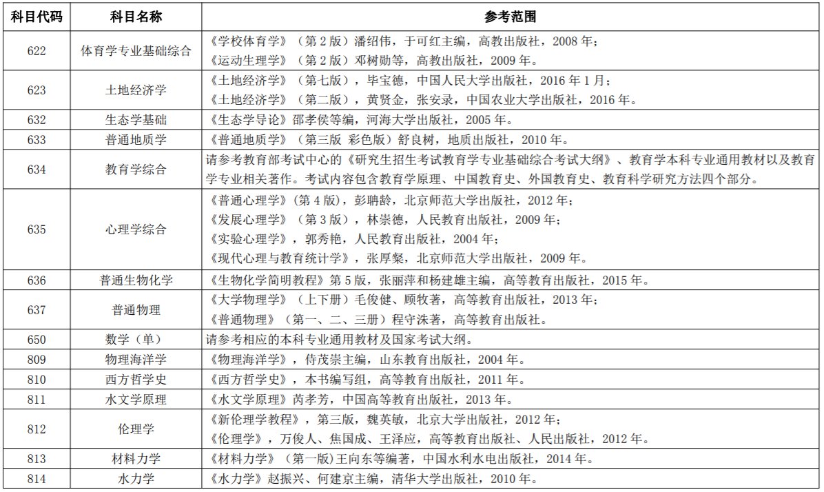 点击查看:河海大学2021年硕士研究生入学考试自命题科目参考范围(完整版)