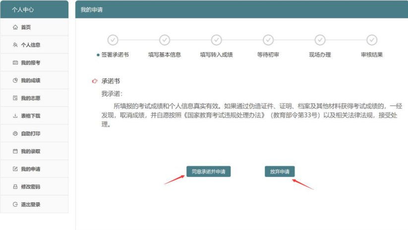4、进入申请流程,阅读承诺书后点击“同意承诺并申请”开始申请,或者点击“放弃申请”。