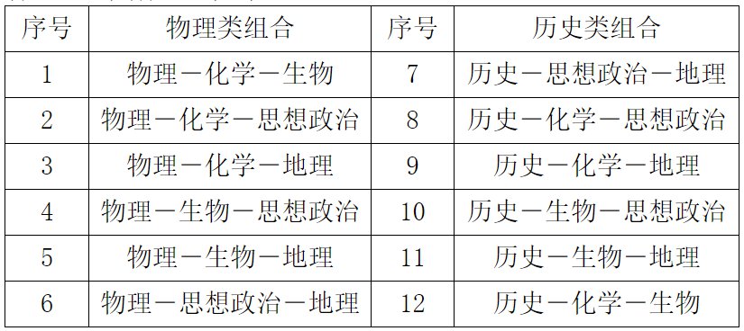 选择性考试科目理论上有12种组合,具体组合如下: