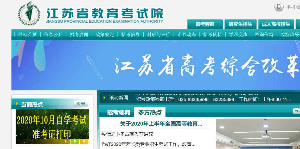 江苏省2020年成人高考将于10月24、25日进行。考生可在考前三天登录江苏省教育考试院门户网站自行打印准考证。