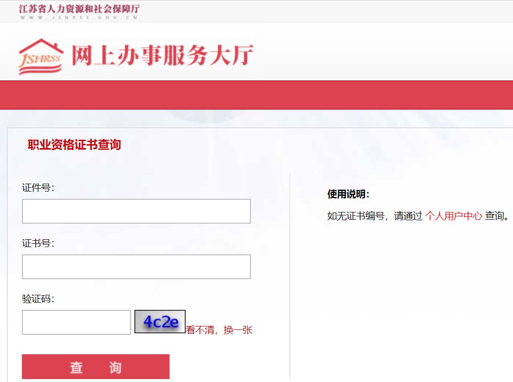 查询入口:江苏省职业资格证书查询