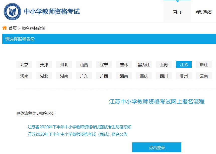 考生进入报名系统后,选择好报名省份,点“点击登录”
