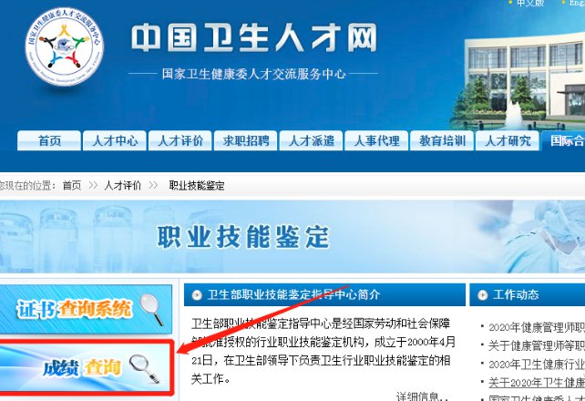 进入【职业技能鉴定考试】页面后,找到【成绩查询入口】,点击进入,就可以进入快速查询通道【成绩查询入口】。