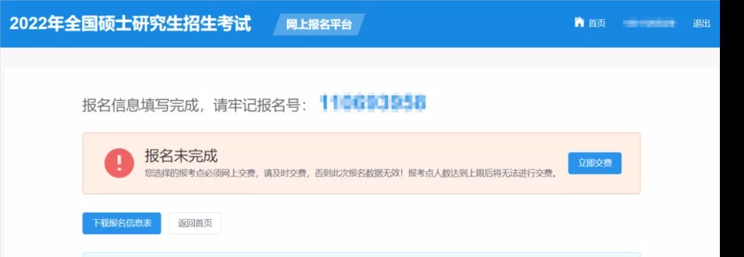 2、生成报名号,完成网上交费后才算本次报名成功。因报考点对报考人数有限制,建议考生尽快完成支付。报考点人数达到上限后将无法继续支付。报名号是网上确认(现场确认)的重要凭证,请考生务必牢记。