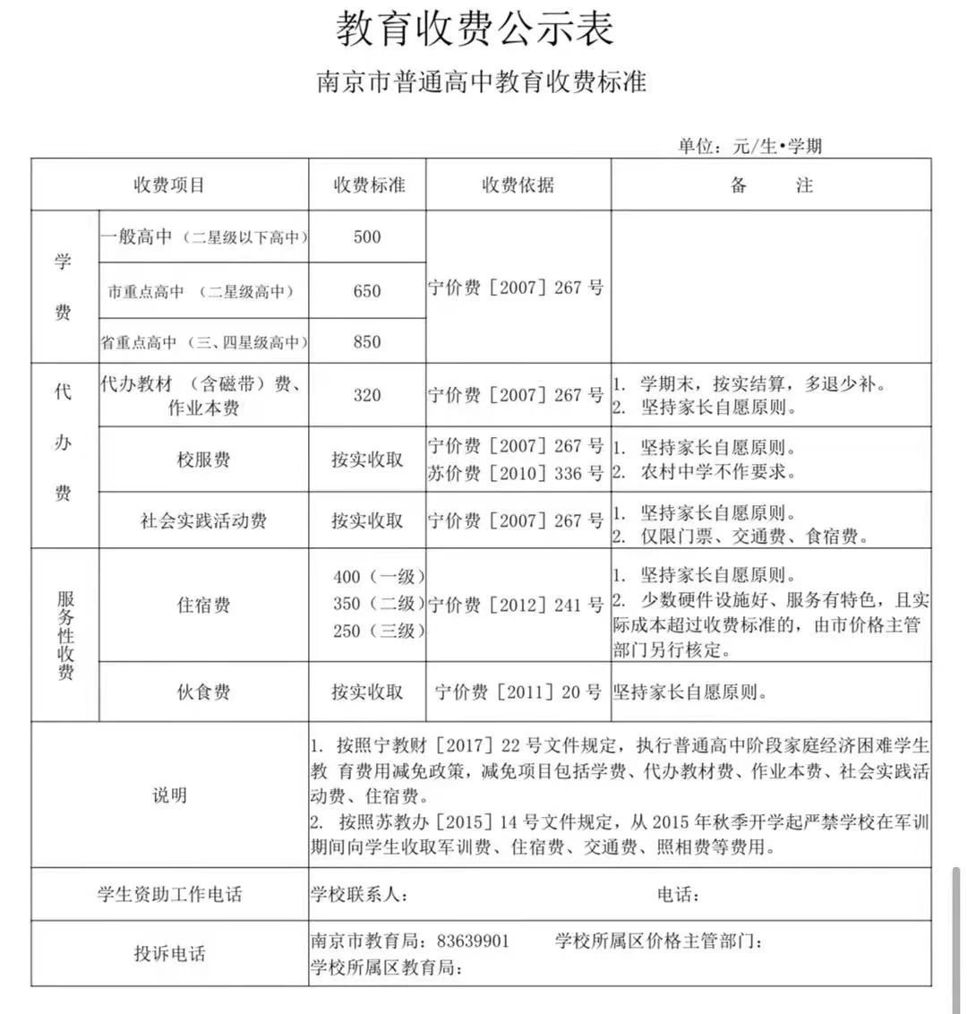 普通高中收费标准:
