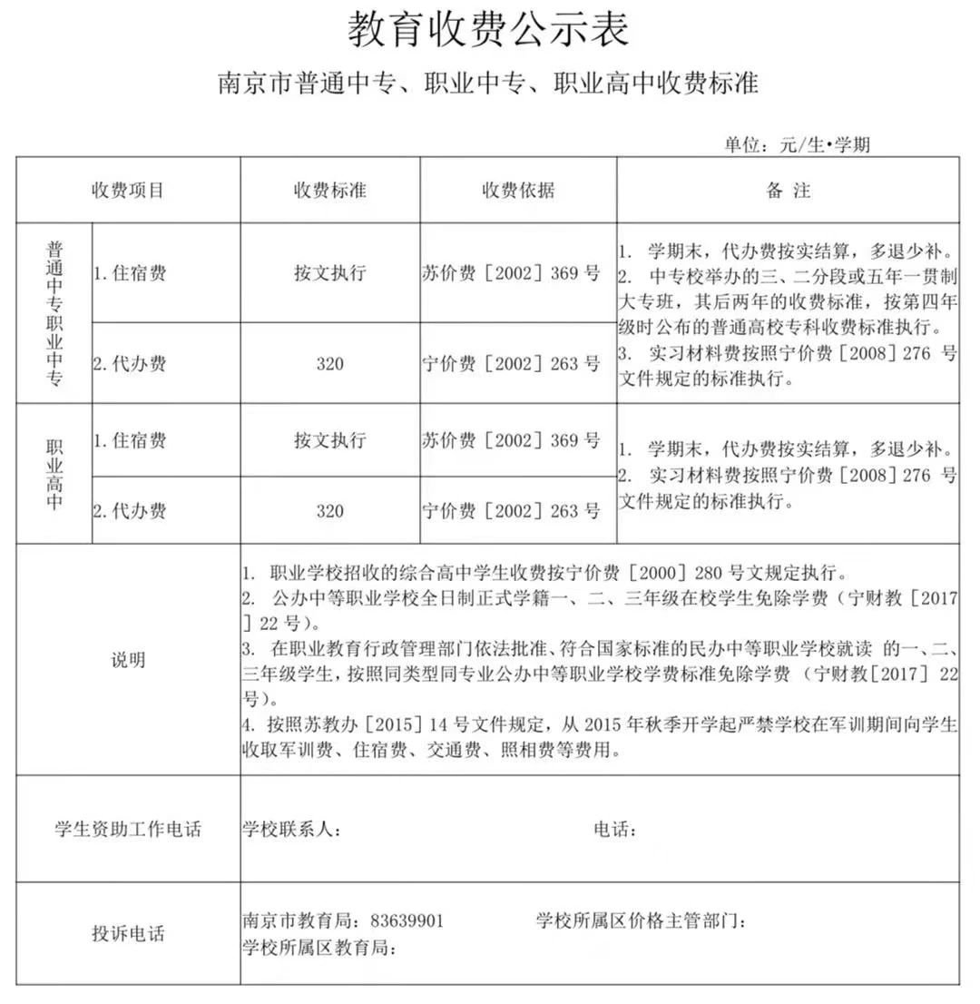 普通中专、职业中专、职业高中收费标准: