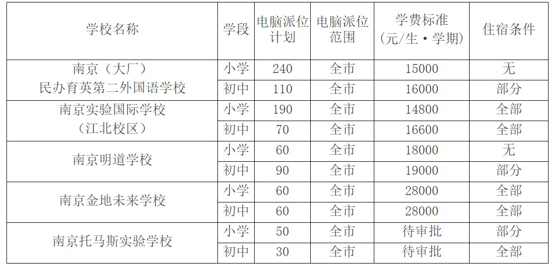 南京江北新区2021年小学初中民办及热点公办学校电脑派位计划