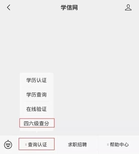 考生可使用移动端进行查询,进入公众号学信网-“查询认证-四六级查分”栏目进行查询。