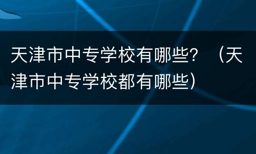 天津市中专学校有哪些?(天津市中专学校都有哪些)