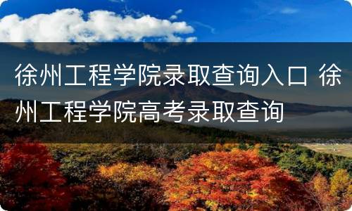 徐州工程学院录取查询入口 徐州工程学院高考录取查询