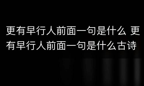 更有早行人前面一句是什么 更有早行人前面一句是什么古诗