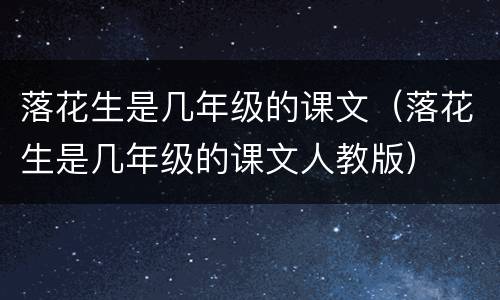 五年级。《落花生》是人教版五年级上册的课文,是中国现代作家许地山的作品。课文描述了一家人收获花生的情景,通过谈论花生的好处,借物喻人,揭示了花生不图虚名、默默奉献的品格。