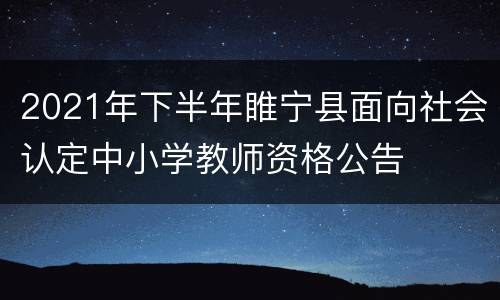 根据《教师法》《教师资格条例》《实施办法》等精神,现将2021年下半年睢宁县面向社会认定中小学教师资格有关事项公告如下。