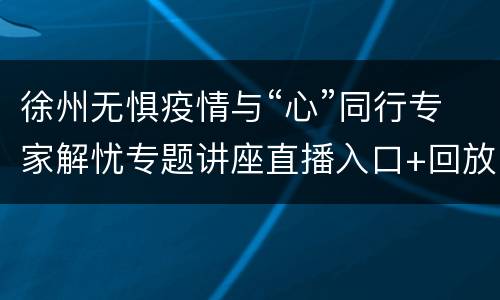 徐州无惧疫情与“心”同行专家解忧专题讲座直播入口+回放入口