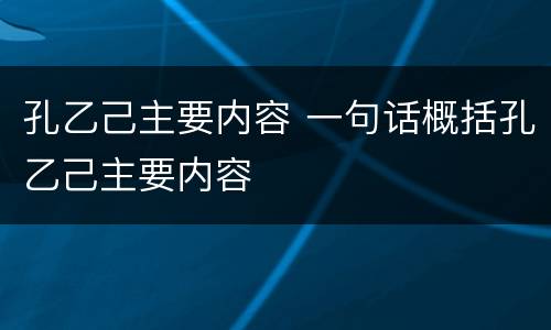 孔乙己主要内容:描写了孔乙己在封建腐朽思想和科举制度毒害下,精神上迂腐不堪、麻木不仁,生活上四体不勤、穷困潦倒,在人们的嘲笑戏谑中混度时日,最后被封建地主阶级所吞噬。