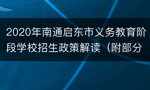 2020年南通启东市义务教育阶段学校招生政策解读情况是怎么样的?2020年南通启东市义务教育阶段学校招生政策问答,一起看看吧!